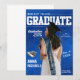 Annonce de remise de diplômes de style magazine avec photo de corps entier remplaçable et informations sur la cérémonie modifiables, nom de l'école, année de remise des diplômes et plus encore.