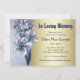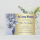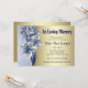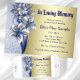 Magnifique annonce de décès et invitation de cérémonie funéraire personnalisée avec des fleurs et des volutes bleu ciel sur fond bleu marine royal et or. Cette belle annonce de décès et de funérailles bleue est facilement personnalisable pour votre événement en choisissant simplement le bouton "Personnalisez-le !" pour commencer à ajouter les détails de votre événement, le style de police, la taille et la couleur de la police, ainsi que la formulation. Veuillez noter que tous les autocollants, cartes et modèles d'invitation que vous trouverez sur Zazzle sont des graphiques imprimés sans véritables bijoux, rubans, reliefs, gaufrures ou pièces ajoutées.