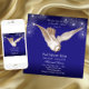 De belles annonces et encarts de service funéraire et commémoratif de colombe bleu marine. Cette élégante annonce de funérailles de colombe bleue est facilement personnalisable pour votre événement.