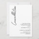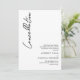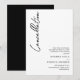 Une annonce d'annulation de mariage noir et blanc dans un design épuré, minimaliste et sans fioritures avec une signature manuscrite approximative pour informer vos invités que le mariage n'aura finalement pas lieu.
