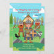 Célébrez l'anniversaire de votre petit garçon Viking avec cette invitation colorée ! Elle représente un jeune guerrier Viking avec un casque à cornes, un bouclier en bois et une hache. Lui et certains de ses amis d'équipage posent devant une maison Viking. À l'arrière-plan, il y a un paysage scandinave et une maison Viking au toit de chaume décorée d'un crâne et de têtes de dragon. Au premier plan, il y a un panneau qui indique FÊTE, le loup de compagnie du garçon et des ballons jaunes. C'est idéal pour une fête d'anniversaire sur le thème Viking ! Cette invitation d'anniversaire pour garçon est facilement personnalisable pour votre événement en ajoutant vos propres détails.