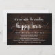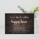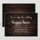 Belle fête après le mariage Happy Hour, Invitation, Annonce de mariage / Carte d'invitation, sur fond en bois sombre rustique, design simple et minimaliste. C'est parfait pour votre réception de mariage et votre fête de célébration post-mariage. Ajoutez vos détails dans la même police / lettrage.