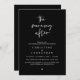 Marquez le début de votre éternité avec élégance en utilisant notre carte d'invitation à la fête du brunch mariage à thème contemporain, "Le matin après", dans Classy Black thème. Parfait pour les couples qui souhaitent profiter de leur joyeux événement, cette invitation exhale le raffinement avec un soupçon de jeu, préparant le terrain pour un événement mémorable. Décoré avec un thème design contemporain intemporel, il ajoute une touche de charme raffiné à vos festivités. Conçu par TeeshaDerrick, cette invitation promet de capturer magnifiquement votre histoire d'amour.