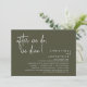 Annoncez et partagez votre bonheur à chaque fois dans le style avec notre design moderne de thème (après nous, nous dînons!) carte d'invitation à la célébration d'élévation mariage. Idéal pour les couples qui ont décidé de célébrer leur meilleure journée. Avec son design sophistiqué et ludique, cette invitation vous donnera le ton pour un événement inoubliable. La carte d'invitation présente un design moderne, un thème vert olive, ajoutant une touche d'élégance intemporelle à votre célébration. Conçu par TeeshaDerrick