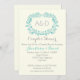 Cadre en feuille d'Aqua mariage à lunettes monocorographie invitation avec initiales avec cadre bleu aqua en feuille et texte en gris sur ivoire. Ce modèle moderne, fleuri, élégant et élégant est une partie design entièrement personnalisable d'un ensemble mariage parfait pour votre mariage d'été.