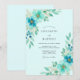 This design features a serene palette of soft aqua and vibrant teal, evoking a fresh and airy atmosphere. Delicate watercolor anemones bloom with artistic grace, accented by shimmering gold leaf details and soft sage green foliage. The ethereal aesthetic is ideal for a romantic seaside or breezy seasonal event.