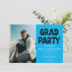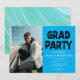 Ce design comporte une police de brosse d'art à l'ombre d'un bleu aqua turquoise. Personnalisez le devant de l'invitation en ajoutant le nom du diplômé, le nom de l'école, l'année de remise des diplômes et les détails de la fête de remise des diplômes. L'arrière de l'invitation a un arrière - plan artistique abstrait qui imite les vagues, pour se coordonner avec la couleur à l'avant.