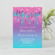 Une jolie invitation pour sa fabuleuse 15e fête d'anniversaire de quincinera. Parties scintillant multicolore stratifié faux brillant rose, violet et dégradé d'aqua goutte contre un turquoise arrière - plan foncé coordonné rose, lavande violet, bleu, bleu ciel et turquoise. Customisez l'élégant style de police, la taille, l'espacement et la couleur selon vos besoins. Invitations de fête d'anniversaire personnalisables. Girly mermaid glam moderne chic flittery foil invitations gouttes créées avec des graphiques arts numériques. Tout le pétillant, la parties scintillant et la brillance est créé avec des effets numériques qui s'impriment comme une photo.
