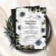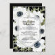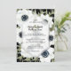 Élégantes fleurs d'anémones noir et blanc et aquarelle feuille sur un arrière - plan noir, les détails de la cérémonie mariage en lettres chic sont présentés sur un encastré de diamant blanc transparent. CORRESPONDRE des articles dans notre magasin.
