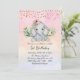 Invitation Aquarelle Bébé Eléphant et fleurs 1er anniversaire