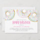 Invités Invitations à votre événement avec cette invitation personnalisée pour le brunch pour bébé. Il présente des beignets vitrés blancs aquarelle avec des arrosages colorés. Personnalisez en ajoutant vos détails. Cette invitation au brunch pour bébés beignes est parfaite pour tout thème d'événement ou de saison. D'autres couleurs sont disponibles.