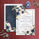 Créez la faire-part de mariage parfaite avec ce design moderne et élégant, avec des bouquets de fleurs bleu marine et rose vif et de la verdure botanique, et d'élégantes calligraphies de script. L'arrière de la carte est habillé d'une aquarelle bleu marine et de jolis coins fleuris. Contacter le concepteur pour les produits correspondants. Copyright Invitations élégants, tous droits réservés.