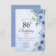 Invitation Aquarelle bleu Dusty Floral Chic 86e anniversaire