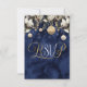 Assurez-vous que votre liste d'invités se remplit rapidement avec ces cartes RSVP de Noël! L'avant est imprimé avec de l'or et du blanc élégants sur une riche texture d'aquarelle bleue encadrée au dessus par des fleurs et des ornements de Noël. Le verso affiche les informations de réponse que vous pouvez customiser. Avec ces cartes, vous ne manquerez pas un seul client !