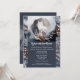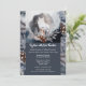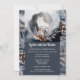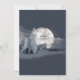 Un design élégant et élégant sur un arrière - plan bleu ardoise très sombre avec la belle silhouette aquarelle d'un loup blanc debout devant une lune noire. Un renard rouge apparaît devant lui et est encadré de feuillage et de feuilles bleus et bruns doux. Il est bordé à chaque extrémité par des pins et des feuilles de sapins. Si vous vous mariez en hiver, faites une merveilleuse région hivernale, automne rustique | automne ou forêt bois thème mariage alors cette illustration est parfaite pour vos besoins.