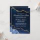 Aquarelle moderne élégante Hiver Bleu et Or Marbre Agate Geode Hanoukka Dinner Party Invitation Card