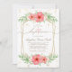 Invitation Aquarelle Boho rose Verre vert Baptême floral