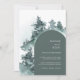 Aquarelle Bois Pin vert Faire-part de mariage. Impressionnez vos invités mariages avec cette invitation à un mariage rustique et boisé avec une aquarelle pittoresque des pins et des montagnes en vert et blanc. Cette belle invitation pittoresque donne une atmosphère calme, rustique, à votre forêt, à la forêt ou à votre mariage de montagne, et donnera vraiment le ton à tout mariage d'aventure en plein air, entouré de neutres, verts, gris, ou tout simplement bleu mousse, fleurs blanches et bouquets floraux, ainsi que le décor mariage assorti. Un complément parfait à toute forêt rustique et boisée avec une célébration mariage de pins. Le Collectif du dimanche © par Rachel Hannah Gee