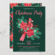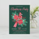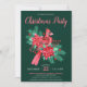 Cette invitation de Noël est faite de fleurs cardinales d'aquarelle rouge et de poinsettia dans un agencement avec aiguilles de pin, baies rouges, fleurs rouges et verts d'hiver contre un arrière - plan vert foncé. Vous pouvez customiser tous les détails de cette invitation. Au fond de l'invitation se trouve un motif poinsettia sur un arrière - plan vert foncé. Voir l'ensemble de la collection correspondante.