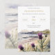 Cette invitation présente une illustration originale d'aquarelle numérique de chardons poussant sur les rives du rivage, qui est un clin d'œil au mythe concernant la façon dont la fleur a contrecarré une invasion viking.