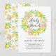 Famille d'Invitations et amis à votre événement avec l'invitation personnalisable citron thème baby shower invitation. Il comprend une couronne d'aquarelle de citrons et de cupcakes au citron. Personnalisez en ajoutant les noms, la date, l'heure, le lieu et d'autres détails de l'événement. Cette invitation à la couronne de citron est parfaite pour le baby shower d'été.