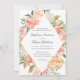 Entourez votre texte mariage avec cette belle médaille de fleurs d'été disposées dans un cadre en forme de losange. Les roses d'aquarelle, les pivoines et les hydrangées dans les tons pêche, rose saumon et blanc cassé forment un joli mélange de couleurs. Modifiez le texte avec vos détails.