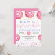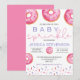 Ce baby shower personnalisable présente des beignets roses à l'aquarelle avec des arroses. Les couleurs sont parfaites pour une douche bébé fille.