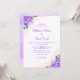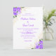 Cet élégant design floral est simple et élégant avec une atmosphère vintage. Les détails de votre mariage sont encadrés de roses d'aquarelle violette et d'accents floraux dorés. Le texte est dans une couleur violet complémentaire. Le dos a une aquarelle violet texturé arrière - plan.
