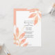 Simple et classe, ces invitations de mariage sont la façon idéale d'invitation tous vos amis et votre famille à votre grande fête du printemps ou de l'été. Dispose de feuilles d'aquarelle or et pêche dans l'arrière - plan avec du texte gris qui est personnalisable. Le dos a un arrière - plan de pêche avec des feuilles blancs et or.