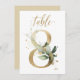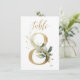 Belle carte de numéro de table avec un motif botanique - une aquarelle illustration de feuilles verts et or. Tableau 8. Veuillez vérifier tous les numéros disponibles