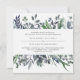 Ce faire-part de mariage botanique moderne présente des feuilles aquarelles dans des tons verts, bleus et gris tendance pour un look à la fois minimaliste et rustique.