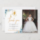 Aquarelle bleue florale photo première sainte communion carte de remerciements