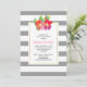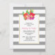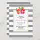 Joli couple mariage moderne et chic invitation avec de belles fleurs tropicales aquarelles, une bordure en rayures grises et blanches et votre texte sur un cadre blanc. Le dos est recouvert d'un motif rayé gris et blanc.