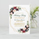Elégante aquarelle Bourgogne Marsala Floral Fête Invitation. Comprend de belles roses et de la verdure botanique. Script Gold. Cadre géométrique.