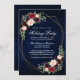 Invitation Aquarelle Floral Gold Frame Fête Fête Bleu