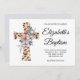 Invitation Aquarelle Floral Leopard Cross Grey Baptême gris