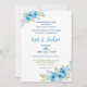Des accents floraux aquarelles bleus fantaisistes et des polices visuellement agréables font une élégante invitation de mariage, évoquant l'adage "Quelque chose d'ancien, quelque chose de nouveau, quelque chose d'emprunté et quelque chose de bleu". Surtout formel dans le style, avec des éléments plus décontractés tissés, ce design mélange sans couture les esthétiques vintage et modernes.