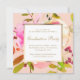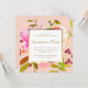 Beau bouquet floral aquarelle avec verdure, baies et cadre en faux or sur le devant de la carte, et arrière - plan blush avec motif pois blanc polka à l'arrière de cette invitation tendance et élégante fête de graduation.
