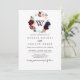 Ce faire-part de mariage monogramme floral illustré d'aquarelle est parfait pour un mariage moderne. Le design est composé d'une aquarelle artistique peinte à la main bleu marine, bordeaux, rouge, roses et pivoines avec d'élégants feuilles verts et une couronne, inspirant la beauté idyllique colorée de l'automne.