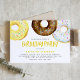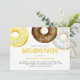 Invités Invitations à votre événement avec cette invitation personnalisable d'anniversaire. Il présente des beignets émaillés de chocolat blanc, jaune aquarelle, chocolat et chocolat avec des arrosages colorés. Personnalisez en ajoutant vos détails. Cette invitation de fête d'anniversaire de beignes est parfaite pour tout thème d'événement ou de saison. D'autres couleurs sont disponibles.