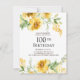 Des fleurs d'aquarelle jaune mignonne, féminine et féminine et des feuilles verts customisent l'invitation à la fête du 100e anniversaire pour les femmes. Vous pouvez modifier le texte de cette carte pour une fête d'anniversaire quel que soit l'âge que vous fêtez. Contactez-moi pour obtenir de l'aide sur vos personnalisations ou pour demander des produits Zazzle correspondants ou coordonnés supplémentaires pour votre groupe.