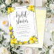 Cette belle invitation à la douche nuptiale présente des citrons lumineux aux fleurs de lavande et un script élégant dans un cadre mauve mince. Vous pouvez customiser le texte sur l'invitation à répondre à vos informations personnelles. Le dos est à l'ombre d'une aquarelle jaune.
