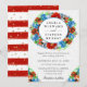 Superbe aquarelle Rouge et Bleu fleurs d'été fleurie Cadre en couronne avec parties scintillant d'or confetti et rayures motif arrière - plan