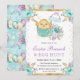 Cute Aquarelle Florale poussette dans l'oeuf et fleurs bleu et violet design avec bordures de feuille d'or et confetti de parties scintillant