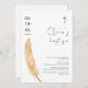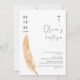 Invitation Aquarelle neutre Plumes Croix Baptême
