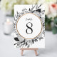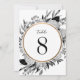 Floraux d'aquarelle noir et blanc d'hydrangées, d'eucalyptus et de pivoines avec bordure circulaire en faux or (facultatif). La table et le nombre sont modifiables. Assurez-vous d'en commander un pour chaque table.