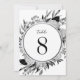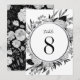Floraux d'aquarelle noir et blanc d'hydrangées, d'eucalyptus et de pivoines avec bordure circulaire en faux argent (facultatif). La table et le nombre sont modifiables. Assurez-vous d'en commander un pour chaque table.