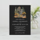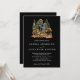 Aquarelle noire Faire-part de mariage de la forêt de pins d'automne. Parfait pour un mariage d'automne. Personnalisez ce design avec vos informations personnelles et votre initiale à l'arrière.