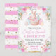 Elégante aquarelle Rabbit de Pâques et oeufs de Pâques design avec fleurs rose et bleu, ballons et parties scintillant d'or confetti avec une rayures rose arrière - plan