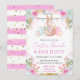 Elégante aquarelle Rabbit de Pâques et oeufs de Pâques design avec fleurs rose et bleu, ballons et parties scintillant d'or confetti avec une rayures rose arrière - plan